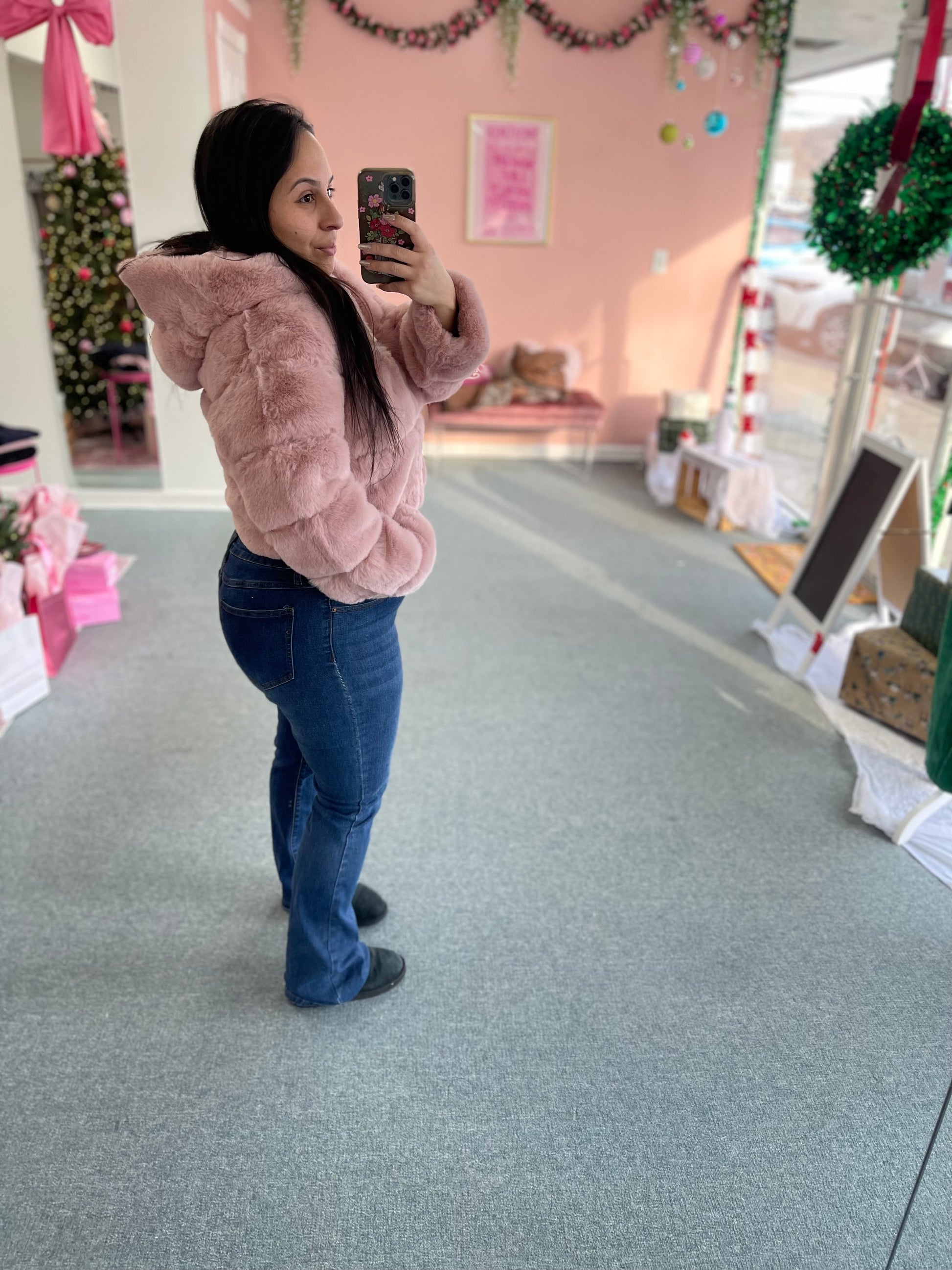 Wrap yourself in soft luxury with the Juliette Hooded Fur Jacket. This short, plush jacket in a dreamy pink hue is perfect for adding a touch of elegance to any casual outfit. With a cozy hood and a flattering silhouette, it’s the ultimate mix of warmth, style, and effortless charm.