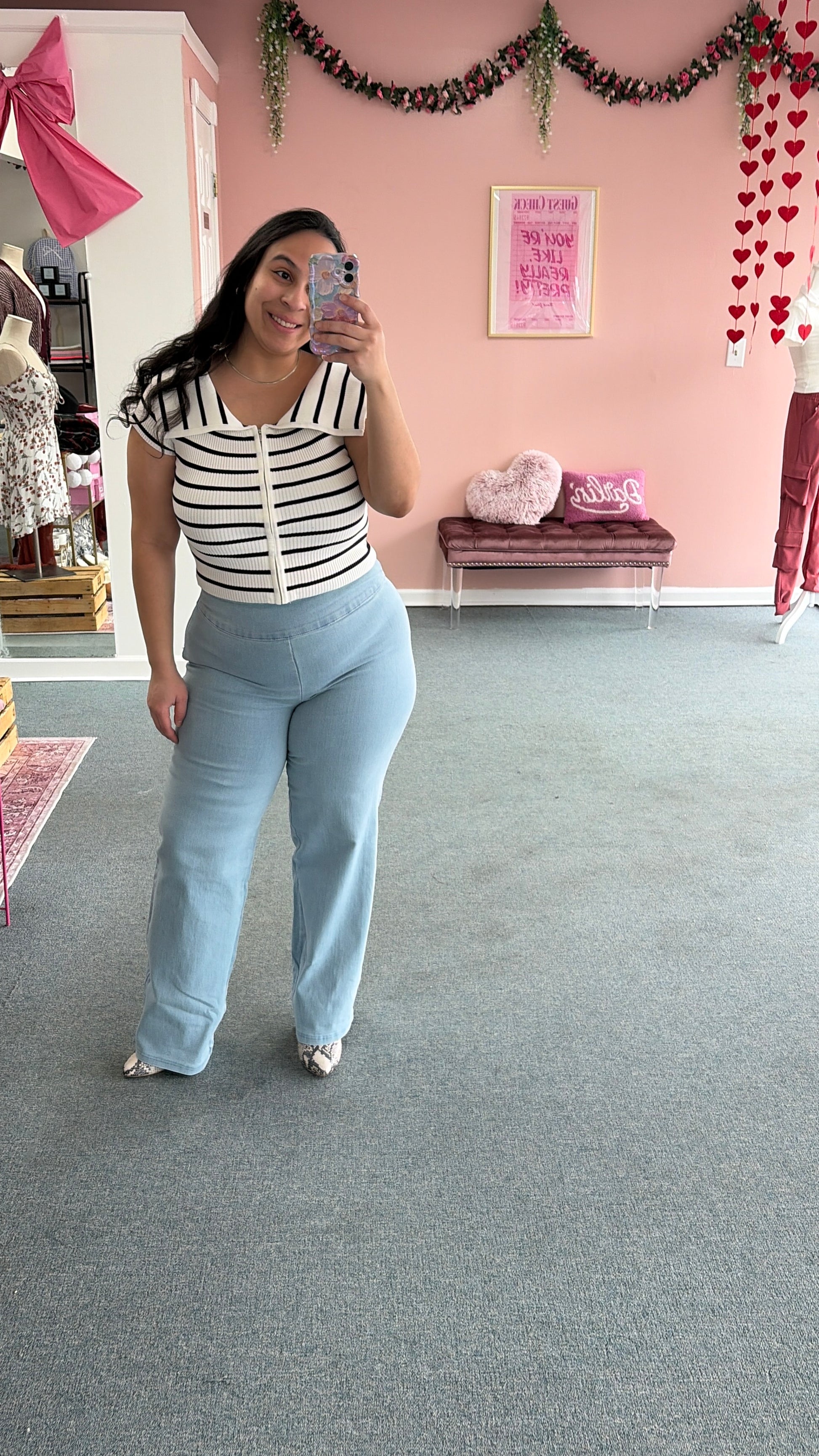 Clean lines. Sculpted fit. Zero bulk. The Side Zip Jeans are designed with a sleek high rise waist and a hidden side zipper for a smooth, flattering finish. No front pockets and no back pockets means no added bulk, just a clean and refined look.